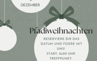 Pfadiweihnachten 13.12.2025 Reserviere dir das Datum und feiere mit uns! Start: 16:00 Uhr Treffpunkt: Gübsensee-Restaurant Allzeit Bereit Eure Pfadileiter*innen
